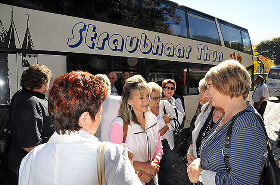 Mit einem Doppestock-Reisecar der Firma Straubhaar Carreisen geht es mit über 60 Personen nach Meran.
